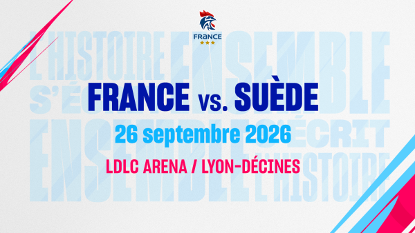 MATCH AMICAL SAMEDI 28 SEPTEMBRE 2026 - 20h00* (*sous réserve de modification TV) LDLC ARENA - LYON-DÉCINESFRANCE - SUEDE